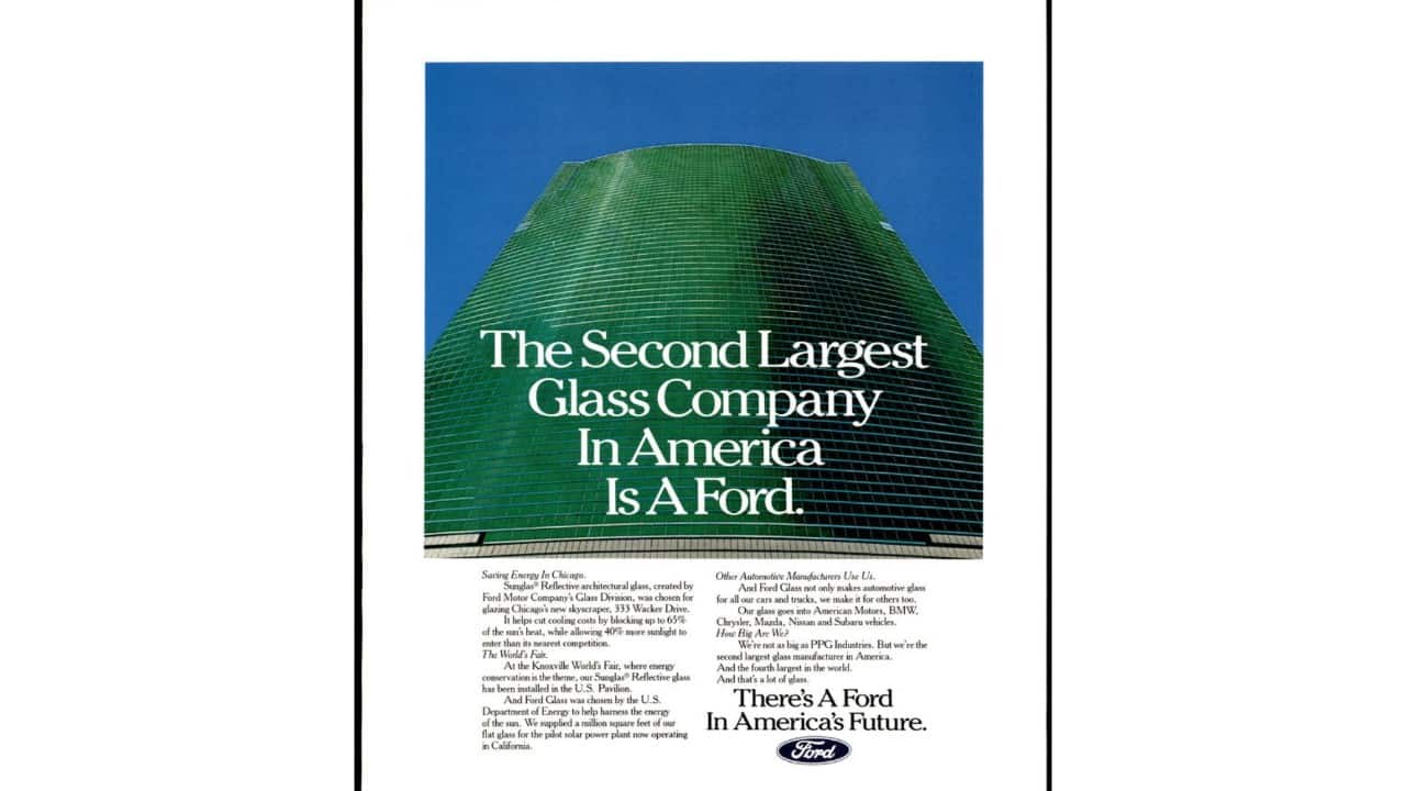 Ford Motor Company was also the second-leading glass manufacturer in the U.S., as noted in this 1982 advertisement.